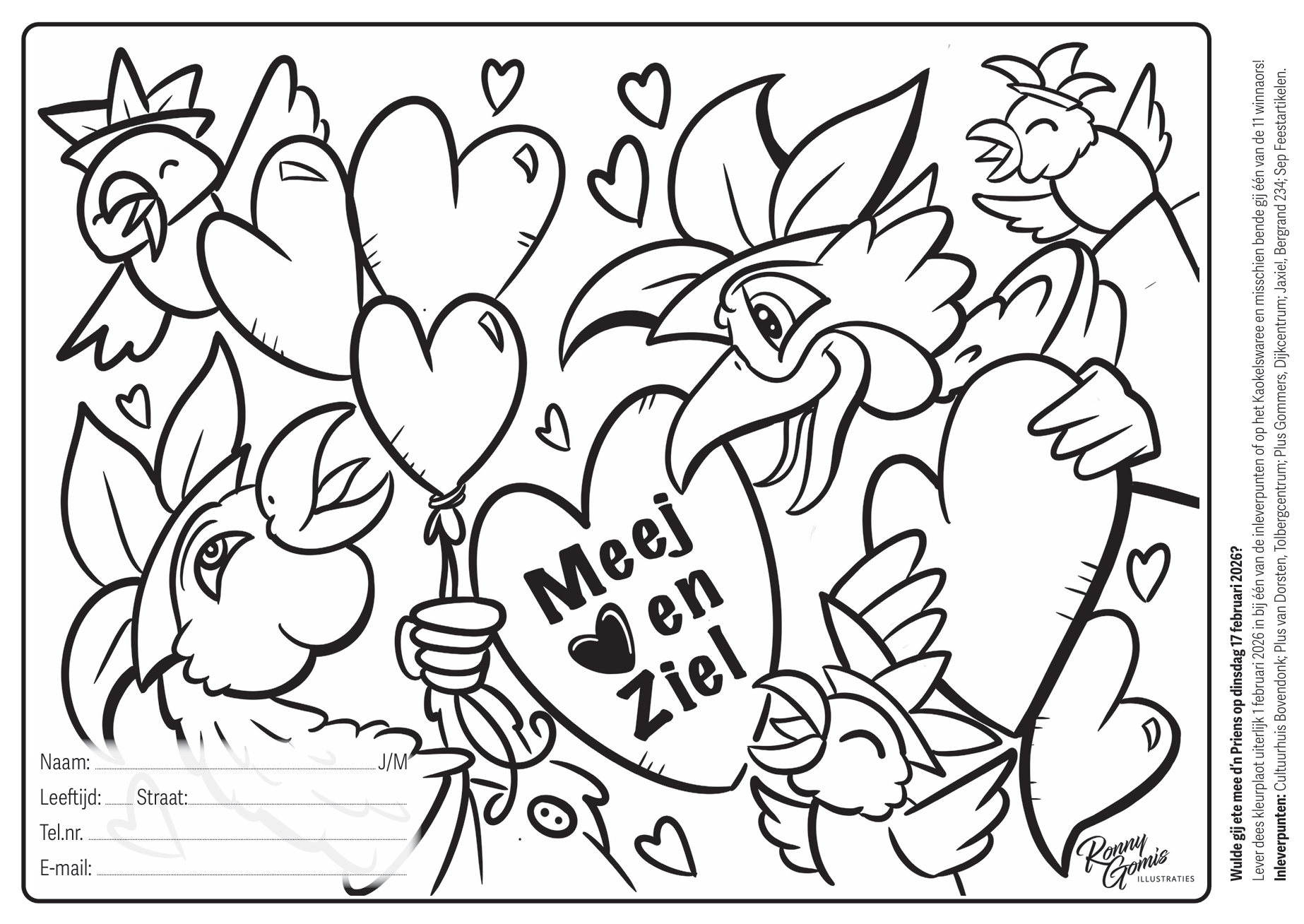 Ben jij een echte Tullepetaonse kunstenaar? Kleur dan de kleurplaat voor de kleurwedstrijd van Stichting Carnaval Roosendaal zo mooi als je kunt! De winnaars mogen mee uit eten met de Priens, Nar en Sjampetter!
